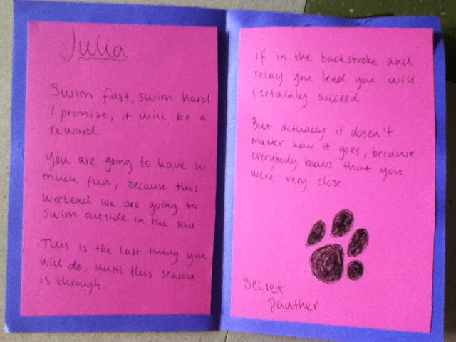 Som jag nämde för ett tag sen så hade vi våra secret panthers, jag hade en tjej som heter Julia, till henne gjorde jag en dikt. Haha, hoppas ni kan läsa den. Och satte två snickers på baksidan. La den i hennes skåp, sen åkte vi till Georgia.